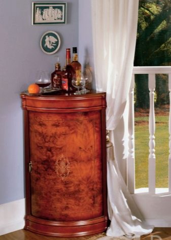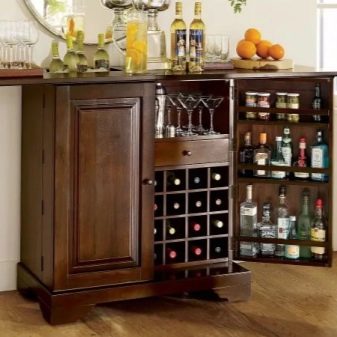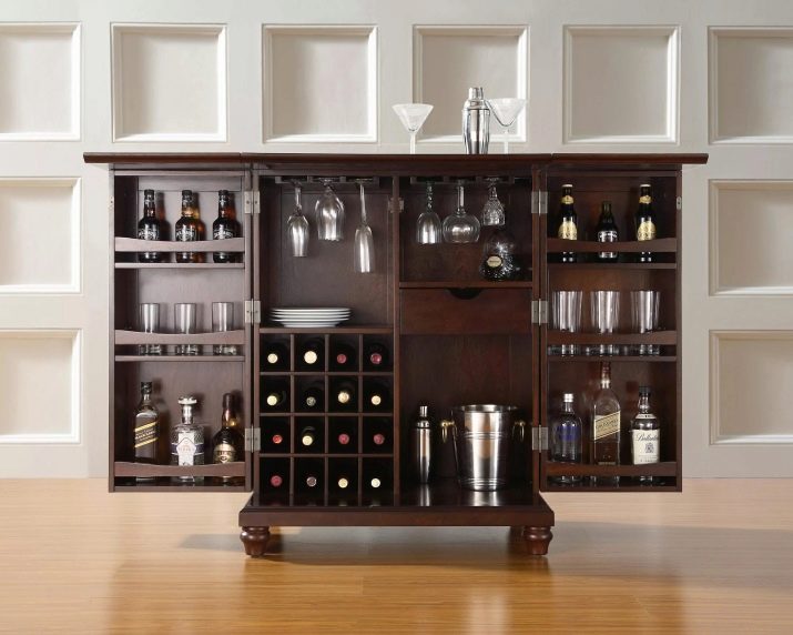 - تصميم ملائم مصمم خصيصًا لتخزين أطباق وزجاجات معينة مع المشروبات. نظرًا لأن هذا النوع من الأثاث مخصص لأغراض محددة ، فقد تم تجهيز الطرز بأرفف وحوامل وحوامل وأجهزة أخرى لتخزين المشروبات الكحولية بشكل مريح وجميل..