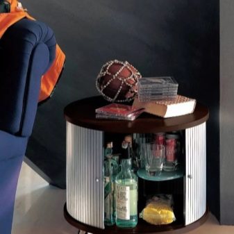 - الاكتناز ، سهولة الحركة. معظم الحانات الصغيرة في المنزل صغيرة الحجم وتحتوي أيضًا على عجلات صغيرة. هذا يبسط حركة مثل هذا الأثاث ، ويسمح لها بالتناسب مع الداخل دون أن تشغل مساحة كبيرة في الغرفة..