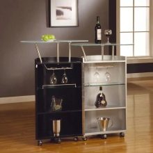 - ميني بار متنقل. هذه النماذج صغيرة الحجم ومجهزة بالعديد من العجلات. يتيح ذلك لهم التنقل بحرية في جميع أنحاء الغرفة ، وإذا لزم الأمر ، يمكن نقل حجر الرصيف هذا إلى منطقة الحديقة بمنزل خاص ، إذا تم استقبال الضيوف في شرفة المراقبة.