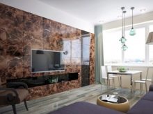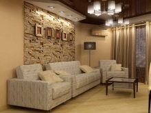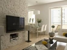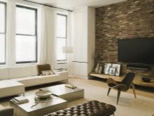 عند تزيين غرف المعيشة بالبناء ، من الضروري مراعاة حجم ودرجة إضاءة الشقة.. الحجر الغامق والمزخرف جدًا مناسب فقط للغرف الفسيحة. في الغرف الصغيرة ، يجب استخدام عينات ناعمة وخفيفة ، تجمع بين البناء المجزأ وورق الحائط. أسلوب شهير هو تزيين مكان مناسب للتلفزيون بالحجر المزخرف..