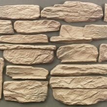 استخدام الحجر الطبيعي معقد بسبب وزنه الثقيل وطبيعته الباردة والمعالجة كثيفة الاستخدام للطاقة والتكلفة العالية. لذلك ، عند تزيين غرف المعيشة ، يتم استخدام مواد الديكور الاصطناعية ، والتي لا تختلف في مظهرها عن نظيراتها الطبيعية..