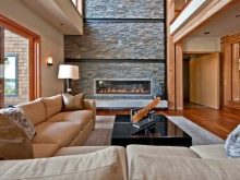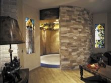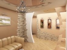 عند تزيين غرفة صغيرة ، استخدم تقنية الزخرفة المجزأة.. الجدران المبطنة بالحجر بالكامل ستخلق جوًا قمعيًا وتجعل المساحة ثقيلة وفوضوية. في غرف من هذا النوع ، يتم تنفيذ زخرفة الزاوية ، وكذلك تصميم الموقد ومنطقة الباب المقوسة. من الممكن تزيين جزء صغير من الجدار المركزي.