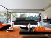 بالنسبة للأسلوب عالي التقنية ، يعد التطبيق العملي أمرًا مهمًا ، لأن الأثاث الموجود في الغرفة مخصص حصريًا لأغراض محددة. إذا كنت ترغب في تنويع المساحة ، يمكنك إضافة قطع أثاث قابلة للتحويل. يمكن أن تكون هذه طاولات قهوة أو طاولات جانبية ، ورفوف مع أرفف للإكسسوارات (بما في ذلك الأرفف المدمجة) ، وكراسي معدنية ، وأرائك معيارية وكراسي بذراعين. إذا تحدثنا عن الأثاث المنجد ، فيجب أن يكون نظام الألوان الخاص به فاتحًا في الغالب ، على الرغم من أنه يُسمح أحيانًا للظلال الساطعة بإنشاء صورة متناقضة.