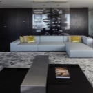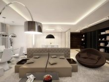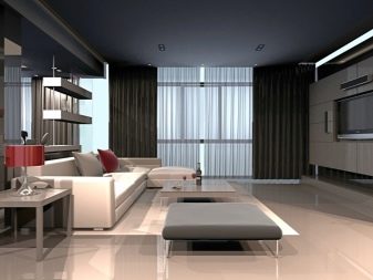 بمجرد أن تقرر إنشاء مساحة أنيقة وعصرية ، من المهم أن تقرر فكرة الأسلوب. من الأسهل لذلك عرض صور الغرف بهذا النمط واختيار ما تريده بنفسك. من المهم أن تبدأ بالسقف. يمكنك إنشاء شيء متعدد الاستخدامات ومثير للاهتمام ، والذي يستحق استخدام الهياكل المعدنية المعلقة ، أو سقف ممتد يتناسب عضوياً مع تصميم هذه الغرفة. يجب أن تكون هناك منافذ في غطاء السقف حيث سيتم وضع إضاءة متنوعة.