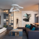 إن إضاءة غرفة المعيشة مهمة أيضًا. بدلاً من الثريا الرئيسية ، الموجودة تقليديًا في وسط الغرفة ، من الأفضل توفير جميع أنواع الإضاءة الخلفية LED وتقسيم المساحة بالضوء. تتلاءم مصابيح الطاولة والشمعدانات وإضاءة الجليد بشكل متناغم مع الداخل ، إذا كانت مصنوعة مع التركيز على قابلية التصنيع. خيار التصميم هذا متاح ليس فقط لمساحة كبيرة: يمكن استخدامه في شقق ذات أبعاد صغيرة..