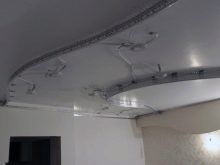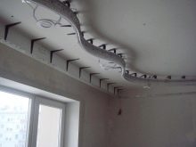 لا يمكن عمل مستويين بدون استخدام إطار سلكي. الإطار هو الهيكل العظمي للهيكل بأكمله. في حالة السقوف المتوترة ، هناك عدة خيارات ممكنة لبناء سقف معقد.