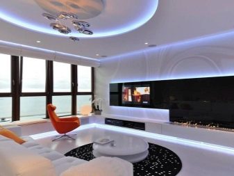 في الآونة الأخيرة ، ظهر اتجاه جديد – هذا هو استخدام شريط LED كإضاءة خلفية مخفية أو صريحة. في إطارات الأسقف المعقدة ، تقع أيضًا على طول المحيط. إنها قادرة على خلق تأثير السقف “العائم”. بالإضافة إلى ذلك ، يمكن أن يصبح الشريط ما يسمى بضوء الحالة المزاجية ، لأنه يمكن أن يلمع ليس فقط باللون الأبيض ، ولكن أيضًا بألوان أخرى..
