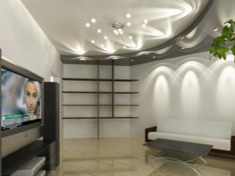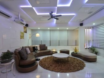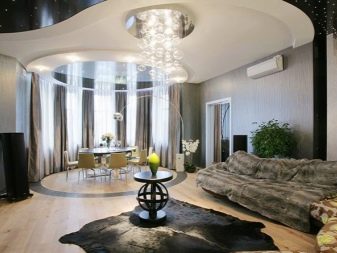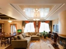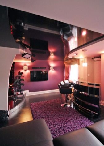 لا تتناسب الأسقف المعقدة مع جميع التصميمات الداخلية. إذا رغبت في ذلك وممكن ، يمكنك تركيب سقف من مستويين في غرفة صغيرة ، لكنه سيبدو سخيفًا للغاية. لكن بالنسبة للقاعة الفسيحة ، سيكون هذا الحل الداخلي مجرد هبة من السماء. عند بناء سقوف من مستويين ، يجب أن يؤخذ في الاعتبار أن الارتفاع الفعلي للغرفة سيفقد حوالي 6-10 سم.