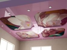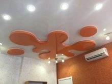 إنها مسألة أخرى إذا كان الإطار ليس مجرد مستطيل ، ولكن نوعًا ما من الشكل: نجمة أو شمس أو دائرة أو بيضاوي ، وصمة عار أو شكل معقد آخر. هذه الأسقف ديناميكية للغاية ومناسبة تمامًا في الأساليب الداخلية الحديثة. من خلال موقعهم ، يركزون على الجزء المركزي من غرفة المعيشة ، إذا كانت هذه العناصر موجودة ، على التوالي ، في المركز. هذا الترتيب كلاسيكي. لكن لا أحد يمنع تحويل التركيز ، على سبيل المثال ، إلى زاوية..