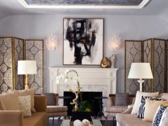 الشيء نفسه ينطبق على الألوان الداكنة. تضيف الألوان الأسود والأزرق والألوان الأخرى عمقًا. لكنهم في نفس الوقت “يأكلون” الضوء. يجب أن تكون غرفة المعيشة أو القاعة الرائعة ذات السقف المظلم مضاءة جيدًا. قليل من الناس يستمتعون بالعيش في الظلام.
