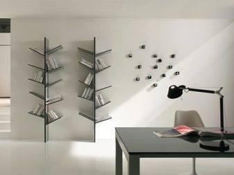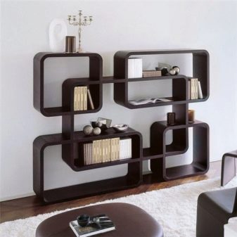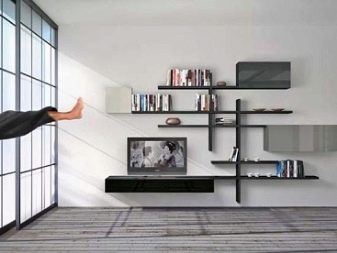 غالبًا ما يتم تصميم التراكيب القائمة على الرف لتقسيم المساحة. لكن ضع في اعتبارك أن كل نمط داخلي يتطلب منهجًا خاصًا به. على سبيل المثال ، محاطة بالأناقة تقنية عالية يُنصح باستخدام كل من الخشب والمعدن ، ويعتبر الشكل المتعرج هو الأمثل. نظرًا لأن هذه العناصر تبدو رائعة من تلقاء نفسها ، فليست هناك حاجة إلى زخرفة إضافية..