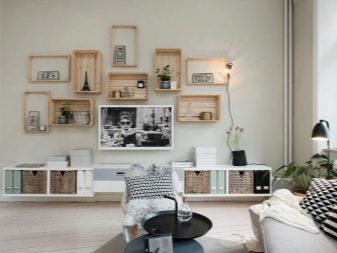 تساعد الأرفف الموجودة على الحائط في غرفة المعيشة عندما تحتاج إلى إزالة المجلات والعناصر الزخرفية والأقراص المدمجة والأجهزة الكهربائية الصغيرة. إنها بديل جيد للرفوف ، في حين أنها لا تخفي اللقطات ، وتجلب الإضاءة إلى الداخل ، وتجعلها جذابة من الناحية الجمالية. اليوم ، تعد حلاً شائعًا ، والذي يشير غالبًا إلى فكرة تصميم ، مما يسمح لك بوضع لهجات صغيرة عليها وهي بطاقات عمل ذات اتجاهات مختلفة. يجب ألا ننسى أنه لا ينبغي أن يكون هناك الكثير من التفاصيل ، وإلا سيفقدون تعبيرهم ، بينما سيبدوون عاديين.