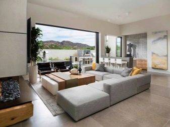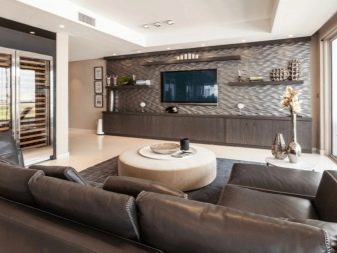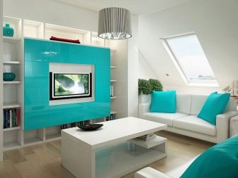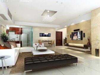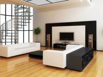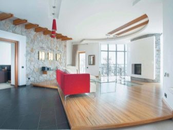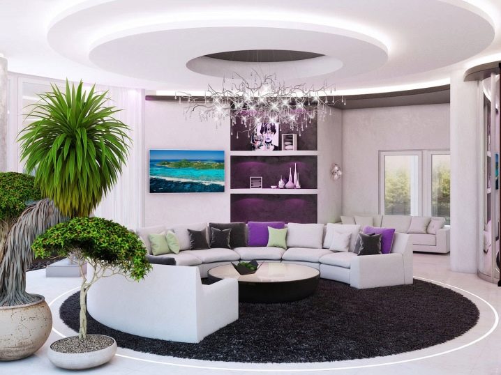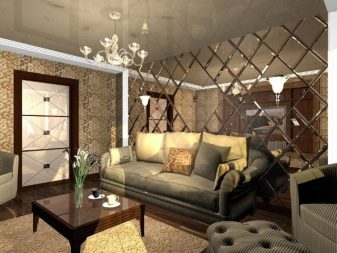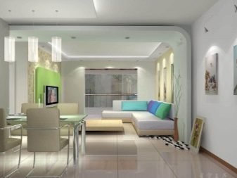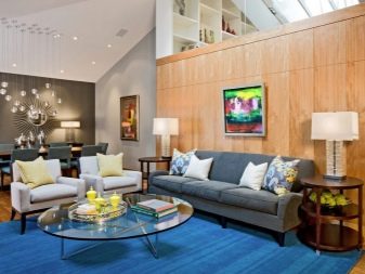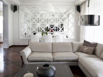 يعتمد ترتيب واختيار المناطق الوظيفية إلى حد كبير على مساحة الغرفة. يمكن أن تتحمل القاعات الفسيحة تركيب أقسام إضافية. غرف المعيشة الصغيرة مخصصة للأرضيات والأثاث متعدد المستويات.