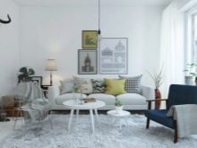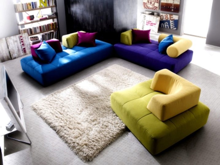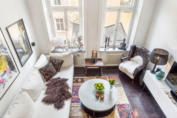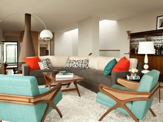 - بالنسبة للغرف الصغيرة ، بدلاً من أريكة واحدة كبيرة ، يمكنك التقاط أثاث بدون إطار ، ويمكن أن تكون كراسي بذراعين ناعمة ، عثمانية ، يسهل إعادة ترتيبها إذا لزم الأمر.