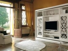 بالنسبة للغرف ذات المساحة الصغيرة ، يمكنك شراء جدران صغيرة وشرائح مع مكان مخصص لتلفزيون ذي أحجام صغيرة.