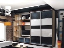 - خزانة ملابس منزلقة ، وهي مجهزة أيضًا بمكان مناسب للتلفزيون. يتميز هذا النموذج بالتطبيق العملي والسعة والتصميم الأصلي وهو مثالي لأي تصميم داخلي..