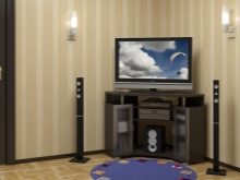 قبل شراء أثاث للتلفزيون ، يجب أن تحدد بدقة المكان الأمثل لموقعه., بالنظر إلى أبعاد غرفة المعيشة: