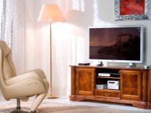 الخيار الأكثر شيوعًا لتثبيت التلفزيون هو الحامل. إنها عملية وصغيرة وقوية.. يوجد في متاجر الأثاث خزانات بأشكال وتصاميم مختلفة:
