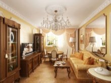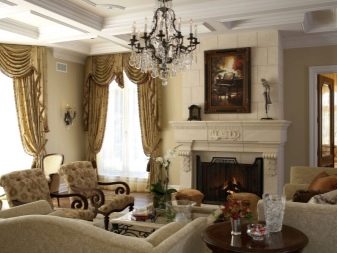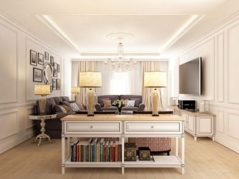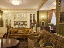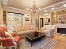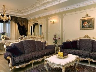 أيضًا ، في غرف المعيشة الكلاسيكية ، يمكنك غالبًا رؤية أثاث أو أثاث عتيق قديم الطراز. بالنسبة لغرفة المعيشة الكلاسيكية ، غالبًا ما يتم اختيار عدة مجموعات من الأثاث (المنجد): عادةً أريكة وكراسي بذراعين ومآدب وعثمانيين. بالإضافة إلى منزلقات لوضع الأطباق والطاولة والكراسي.