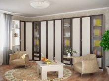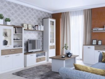 غرفة المعيشة هي مكان يتم فيه تخزين الكثير من الأشياء. هنا يمكنك العثور على العديد من الهدايا التذكارية والكتب وألبومات الصور وغير ذلك الكثير. لتخزين كل هذه الأشياء الضرورية ، هناك حاجة إلى مكونات خزانة معيارية – خزانات وأرفف وخزائن ذات أدراج. في كثير من الأحيان ، يمكنك أن ترى في المجموعة حوامل للنباتات وغيرها من الأدوات.
