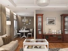 النمط التقليدي مألوف وقريب من الكثيرين. هذا النمط لن ينفد أبدًا أو يصبح قديمًا. فقط شيخوخة الأشياء ممكن. يتميز هذا التصميم الداخلي بوجود جدران وخزائن وخزائن ذات أدراج وحالات عرض للأطباق ومجموعة لتناول الطعام. وعنصر آخر مهم للغاية هو وجود أريكة وكرسيين بذراعين. كانت غرف المعيشة هذه من قبل ، وحتى الآن يتم العثور عليها غالبًا.