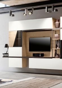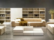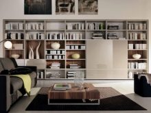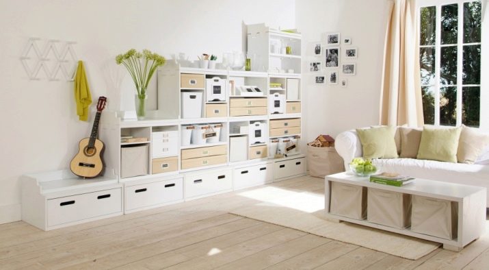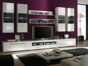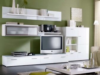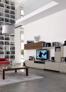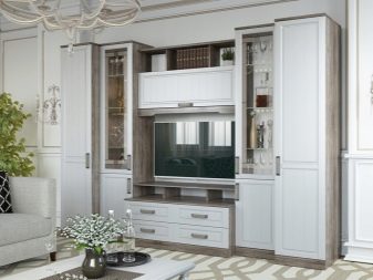 غرفة المعيشة هي مكان يتم فيه تخزين الكثير من الأشياء. هنا يمكنك العثور على العديد من الهدايا التذكارية والكتب وألبومات الصور وغير ذلك الكثير. لتخزين كل هذه الأشياء الضرورية ، هناك حاجة إلى مكونات خزانة معيارية – خزانات وأرفف وخزائن ذات أدراج. في كثير من الأحيان ، يمكنك أن ترى في المجموعة حوامل للنباتات وغيرها من الأدوات.