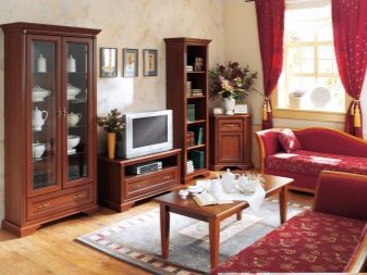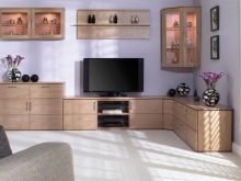 يجب أن تصنع المجموعة بأكملها بنفس الأسلوب ومن نفس المادة. لا تنس تناغم المجموعة المعيارية والغرفة بأكملها. غرفة المعيشة لا يمكن تصورها بدون أثاث منجد. يمكن دمج مخطط ألوان التنجيد مع لون الأثاث ، أو يمكن أن يكون بمثابة لهجة متناقضة. يتمثل دورها في خلق جو حميمي ومريح. بالإضافة إلى خزائن الزاوية ، فإنها تقوم أيضًا بعمل تكوينات مختلفة من طاولات السرير..