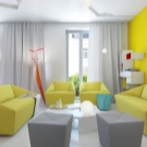 - ألوان متناقضة. يتماشى اللمعان الرمادي الرائع مع الأصفر. سيكون الأحمر إضافة تقليدية إلى الأسود. يتم تحديد نقاء الثلج الأبيض المثالي من خلال ألوان برتقالية وخضراء فاتحة. الأسفلت الرطب ينسجم مع الألوان الزرقاء والرمادية. الغرفة الخضراء متناغمة مع أثاث ينجي. هذا المزيج هو تسليط الضوء في الداخل المتطور..