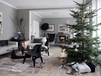 وتجدر الإشارة إلى أن ديكور غرفة المعيشة لا يجب أن يكون دائمًا قياسيًا وكلاسيكيًا. لذلك ، على سبيل المثال ، سيصبح الحوض مسيطرًا وسيظل دائمًا في دائرة الضوء. تماما مثل البيانو. ولكن يجب الجمع بين أسلوب غرفة المعيشة وآلة موسيقية. ويمكن أن تصبح الشجرة ليس فقط سمة لا يمكن الاستغناء عنها لعطلة رأس السنة الجديدة ، ولكن أيضًا عنصر تصميم مثير للاهتمام في الشقة. والآن نحن لا نتحدث عن شجرة صنوبرية خضراء ، ولكن عن نموذج ثلاثي الأبعاد لشجرة عيد الميلاد الخشبية المزخرفة..