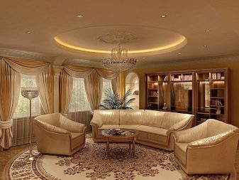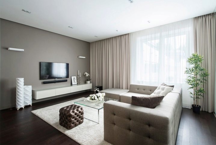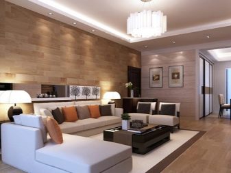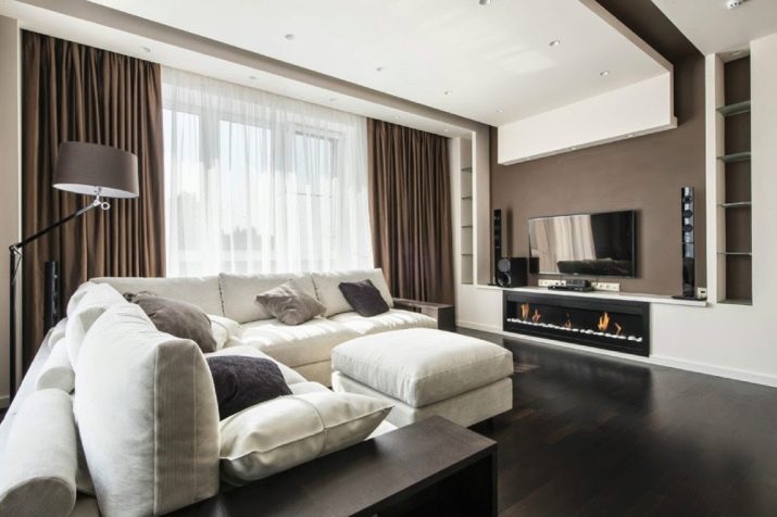 عند تزيين الجدران والسقوف في غرفة المعيشة ، من الناحية المثالية ، يجب أن تختار ظلال دافئة. يتم استخدام مزيج البيج والبني من قبل العديد من المصممين ويرتبط بالراحة والاستقرار. يتم الترحيب بالانتقال السلس من الضوء إلى الشوكولاتة في داخل غرفة المعيشة وتبدو متناغمة وسهلة.