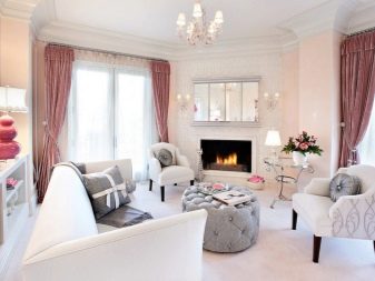 تضفي الغرف المضيئة بألوان الباستيل مزيدًا من الإضاءة والتهوية على الداخل. لكن لا تقم بإنشاء تصميم داخلي أحادي اللون. يجب أن تكون التفاصيل والعناصر الساطعة موجودة في غرفة المعيشة. خلاف ذلك ، ستشبه الغرفة غرفة مستشفى مملة. وإلى جانب ذلك ، ستشعر غرفة المعيشة هذه بالملل والملل بسرعة..