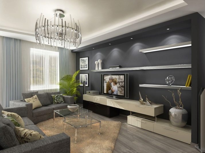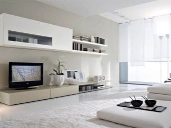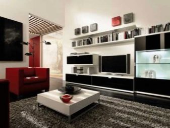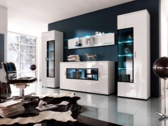 تتناسب التصميمات المعيارية العصرية تمامًا مع المناطق الداخلية لغرفة المعيشة. تتمتع بمظهر صارم وحديث ويتم وضعها بشكل مضغوط على طول الجدار ولا تشغل مساحة كبيرة. لكن في الوقت نفسه ، تناسب تمامًا الأشياء المهمة والملحقات الصغيرة والأطباق أو الكتب..