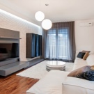 في الوقت نفسه ، حاول وضع الأثاث الضروري فقط في الغرفة ، وتخلي عن شريحة الجدار الضخمة للتلفزيون ونظام الاستريو. تلفزيون مثبت على الحائط على حامل واستخدم تخزينًا فسيحًا في الردهة أو غرفة النوم.