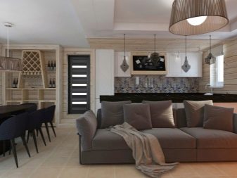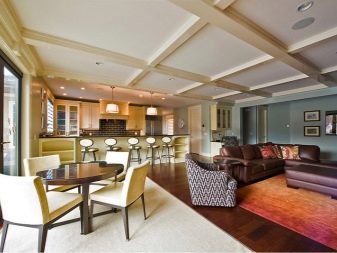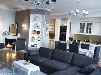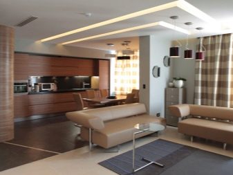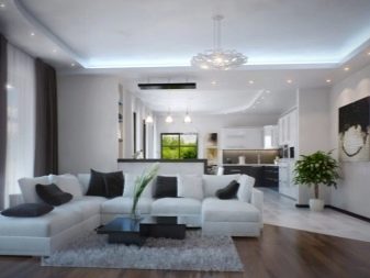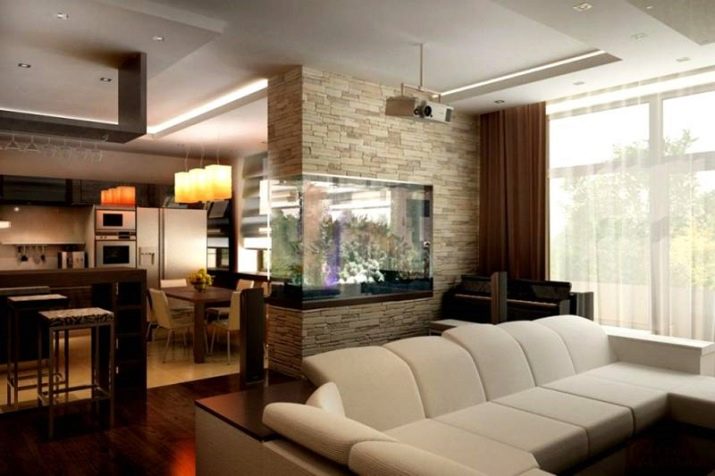 في بعض المنازل والشقق يفضل أصحابها الجمع بين غرفة المعيشة والمطبخ. في هذه الحالة ، يكون التقسيم إلى مناطق مشروطًا. من المهم التغلب على هذا التصميم الداخلي بشكل صحيح وتنظيم المساحة بشكل صحيح ، ثم يمكنك الحصول على غرفة معيشة مطبخ أنيقة وعصرية. ولهذا ، فإن تصميم منطقتين بألوان مختلفة هو الأنسب..