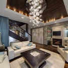 - لوح جصي متعدد المستويات أو سقف ممتد مع أضواء كاشفة وثريا جميلة ؛