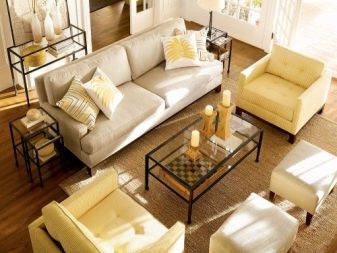 لتجسيد اتجاهات مختلفة من الطراز الحديث في غرفة المعيشة ، يجب الانتباه إلى الأثاث التالي: