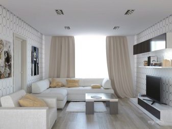 يجب أن تكون غرفة المعيشة خفيفة لخلق تصميم داخلي دافئ وجميل. من الضروري تجنب وجود عناصر وتفاصيل غير ضرورية ، لأنها تفسد الانطباع العام.