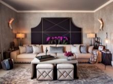 - من الضروري اختيار العناصر الداخلية التي تتميز بالراحة والتنوع. بالنسبة للقاعة ، يعد الأثاث المعياري خيارًا جيدًا ، حيث يمكنك ، إذا كنت ترغب في ذلك ، تغيير موقع الوحدات لتحديث الديكور.