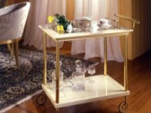 - سيكون الديكور الداخلي الممتاز عبارة عن طاولة قهوة ، ومن الأفضل إعطاء الأفضلية للنماذج الزجاجية.