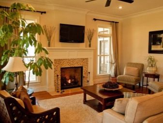 في غرفة المعيشة مع مدفأة ، يجب أن يكون هذا العنصر مركزيًا عند تزيين الغرفة. يجب وضع الأثاث حوله. بالنسبة لغرف المعيشة الصغيرة ، يجدر اختيار الأثاث بأسلوب بسيط بسبب الراحة والحجم الصغير والتنوع..