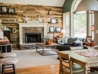 بالنسبة لغرفة المعيشة الفسيحة ، يمكنك استخدام جدار على الحائط بالكامل أو على جزء منه فقط ، ويعتمد الاختيار على اتجاه الأسلوب والتفضيلات الشخصية لمالك المنزل.