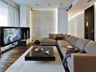 - إعدادات. يؤثر شكل وحجم الغرفة على تكوين الأثاث. بالنسبة لغرف المعيشة الصغيرة ، يمكنك استخدام المنتجات الزاويّة بسبب صغر حجمها واتساعها. إذا قمت بترتيب الأثاث في زوايا غرفة صغيرة ، فسيكون مركزها خاليًا تمامًا..