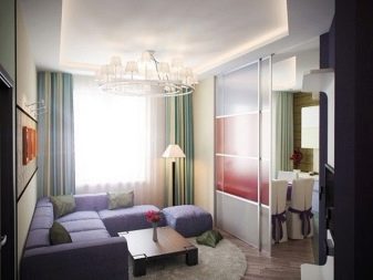 بشكل فعال وأنيق ، يمكنك تجهيز غرفة نوم غرفة المعيشة حيث يمكنك مقابلة الضيوف ، وإذا لزم الأمر ، تنظيم منطقة للنوم. لتزيين هذه الغرفة ، يمكنك استخدام الحائط وخزانة الملابس ، حيث توجد كل الأشياء. أثاث ينجي مع واجهات فاتحة مناسب حتى لغرفة المعيشة الصغيرة. إدراج المرآة على الواجهات المنزلقة لخزانة الملابس يجعل الغرفة أكثر اتساعًا بصريًا. سجادة خفيفة ، تبدو متناغمة مع غطاء أرضي داكن ، ستضيف الراحة..