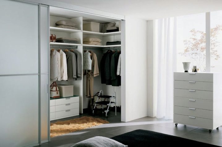 أبسط حل هو تكييف مكانة منفصلة في الشقة لخزانة ملابس واسعة أو غرفة ملابس للأشياء.. للقيام بذلك ، ما عليك سوى إرفاق الباب وضبط الأرفف التي تضاف إليها خطافات الملابس. يتم إرفاق الميزانين إذا لزم الأمر.