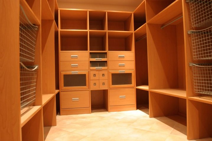 لتصنيع الأرفف ، عادة ما تستخدم مادة مثل اللوح. إنه مغطى بالبلاستيك الزخرفي. إذا سمحت الأموال ، يمكنك شراء الخشب الطبيعي – لذا ستبدو غرفة الملابس أكثر أناقة وباهظة الثمن. يتم الانتهاء من الحواف بشريط حواف. هذا يسمح لك بعدم إتلاف الأشياء المخزنة على الرفوف..