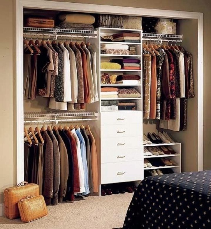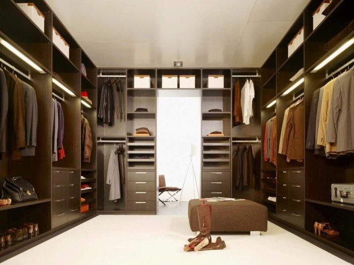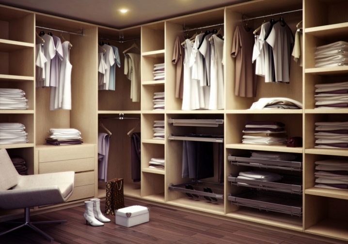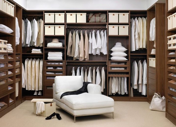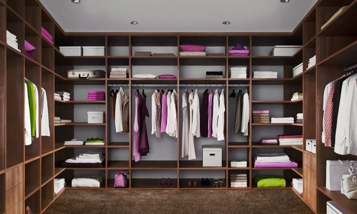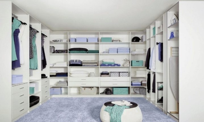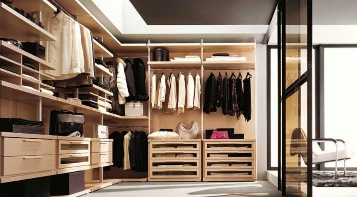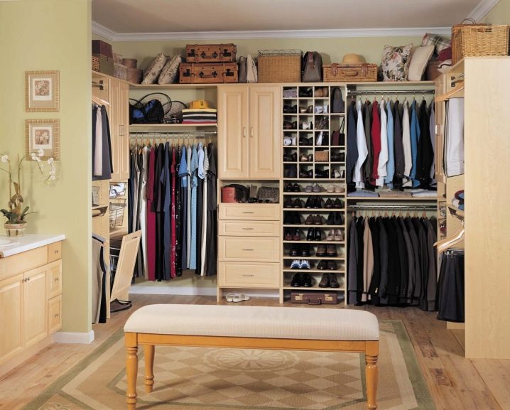 يوجد أيضًا العديد من أنظمة التخزين في غرفة الملابس. كل هذا يتوقف على عدد الأمتار المربعة الموجودة في الغرفة ، ومقدار الأموال التي تكون الأسرة مستعدة لإنفاقها من ميزانية الأسرة..