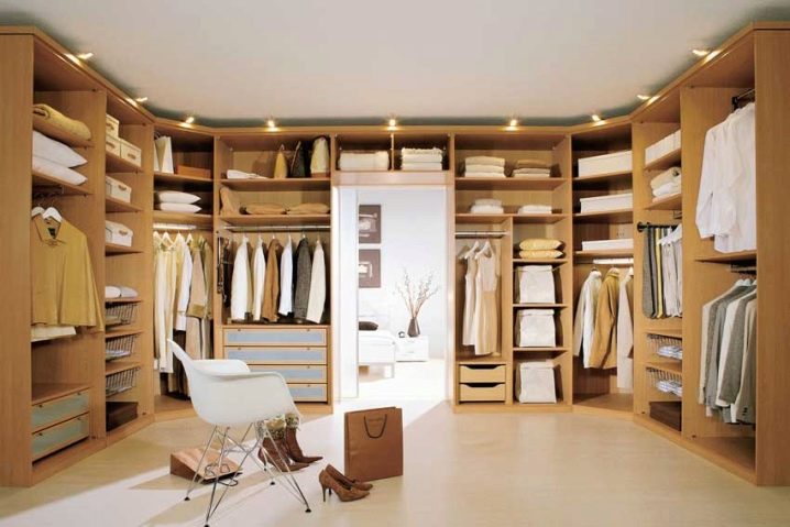 يمكن أن تكون غرفة ارتداء الملابس من النوع المفتوح أو المصممة للداخل أو مغلقة – إما أن تكون غرفة مخصصة أو منطقة مسيجة في غرفة في شقة. يمكن ترتيب غرفة ارتداء الملابس في مكان مناسب أو زاوية أو متصلة بالحائط.