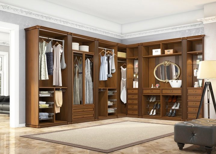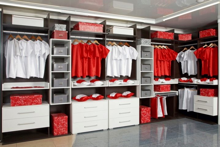 العناصر الأساسية التي يجب أن تكون في كل غرفة ملابس هي علاقة مفتوحة وخزانة ملابس. يمكن أن تكون بقية العناصر بالعدد الذي تريده: الصناديق ، والأقواس ، والطاردات ، والأرفف القابلة للسحب ، والقضبان ، والحاويات ، والشماعات ، بالإضافة إلى أي عدد من الأقسام والأرفف. بفضل النظام المعياري ، أصبح الأثاث الحديث لغرف تبديل الملابس متعدد الاستخدامات لدرجة أنه من الممكن تنظيم غرفة تبديل ملابس جيدة حتى في شقة استوديو صغيرة. الشيء الرئيسي هو الامتثال لجميع قواعد وقواعد البناء (SNIP).