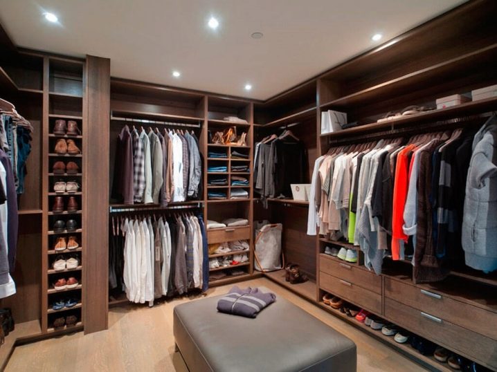 كقاعدة عامة ، تم تصميم غرف تبديل الملابس بشكل فردي لكل عميل ، مع مراعاة رغباته في ملء وتكوين الغرفة التي ستقع فيها غرفة الملابس ، وبالتالي يمكن أن يكون هناك الكثير من أنواع غرف الملابس. ومع ذلك ، هناك عدة أنواع أساسية..