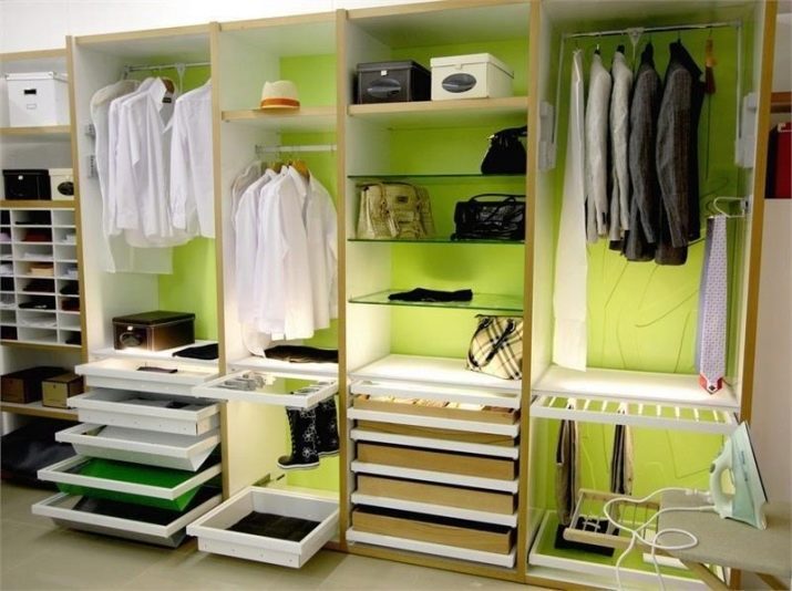 العناصر الأساسية التي يجب أن تكون في كل غرفة ملابس هي علاقة مفتوحة وخزانة ملابس. يمكن أن تكون بقية العناصر بالعدد الذي تريده: الصناديق ، والأقواس ، والطاردات ، والأرفف القابلة للسحب ، والقضبان ، والحاويات ، والشماعات ، بالإضافة إلى أي عدد من الأقسام والأرفف. بفضل النظام المعياري ، أصبح الأثاث الحديث لغرف تبديل الملابس متعدد الاستخدامات لدرجة أنه من الممكن تنظيم غرفة تبديل ملابس جيدة حتى في شقة استوديو صغيرة. الشيء الرئيسي هو الامتثال لجميع قواعد وقواعد البناء (SNIP).